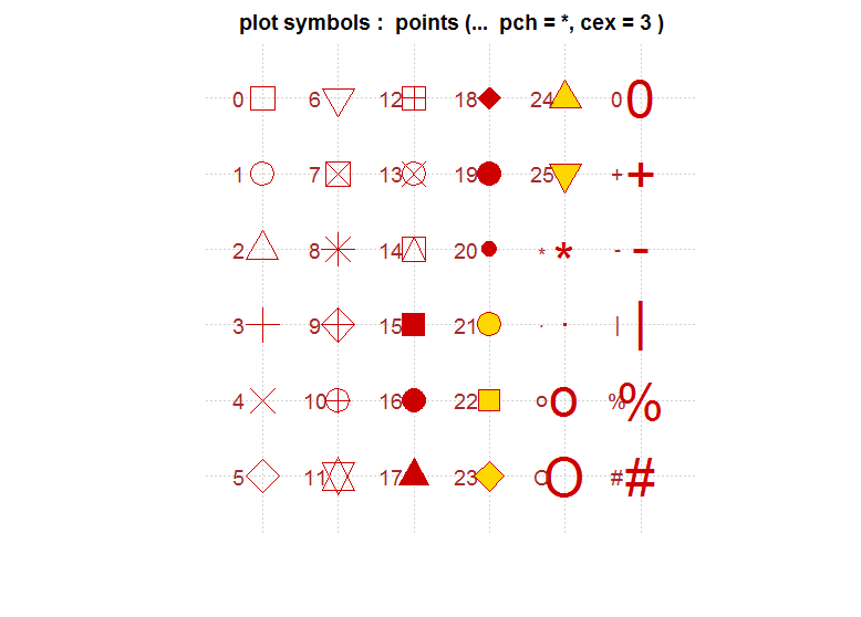 pchShow() # pch값에 따른 그래픽 모양 출력