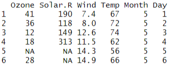 head(airquality) # airquality의 데이터 헤더 구조를 살펴본다.