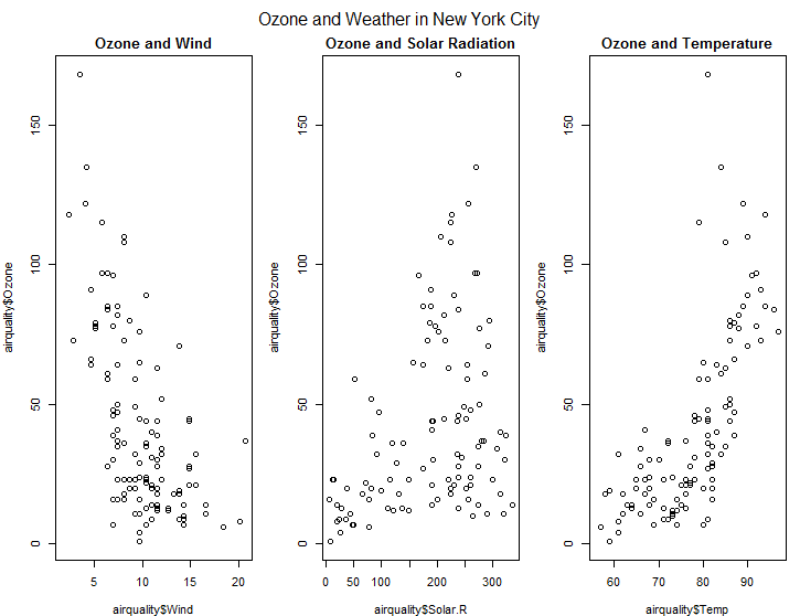 mtext("Ozone and Weather in New York City", outer= TRUE) # 최종 제목을 추가한다.