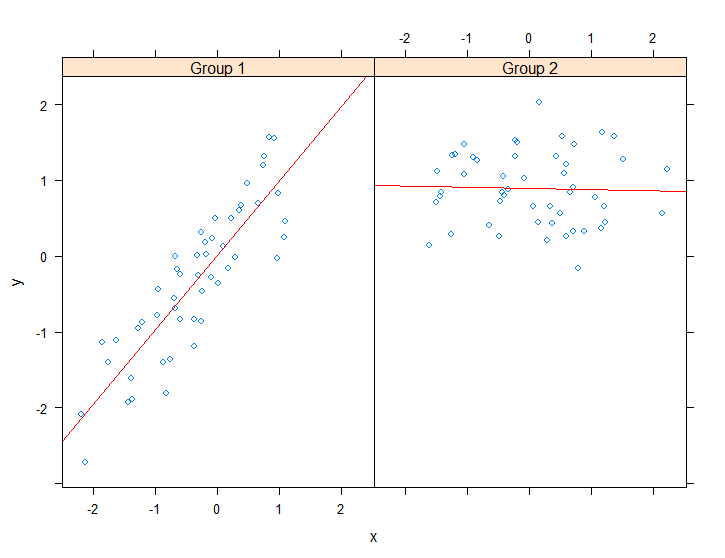 panel.lmline(x, y, col = 2) ## Overlay a simple linear regression line