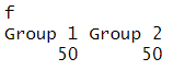 table(f) # swirl에서 f란 값에 x에 대한 y값 50개, 랜덤 값 50개를 'f'에 넣었다. table(f)를 실행해보자.