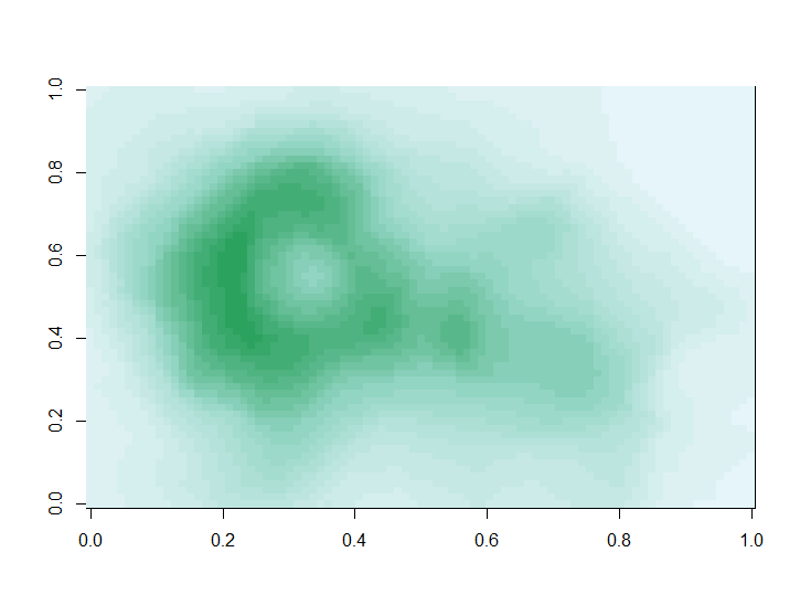 image(volcano, col = pal(20)) # volcano란 데이터셋의 Auckland's Maunga Whau Volcano에 대해, 20개 색으로 표현해보자.